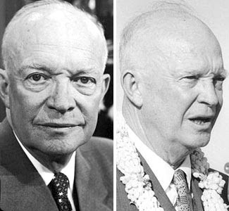 Ike didn't have much hair upon inauguration, but sported a few more wrinkles at the end of his presidency . A war hero, he was no stranger to stress